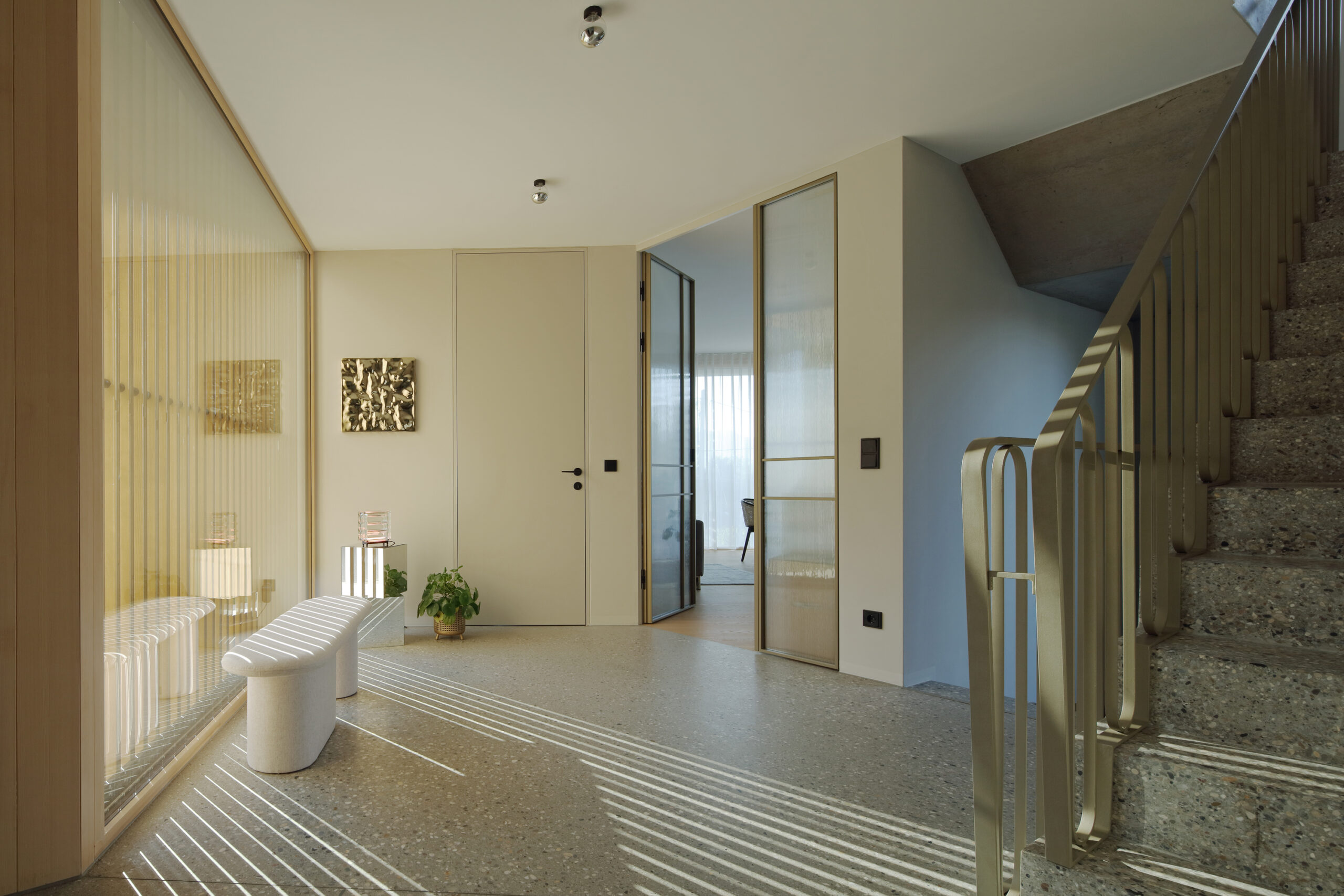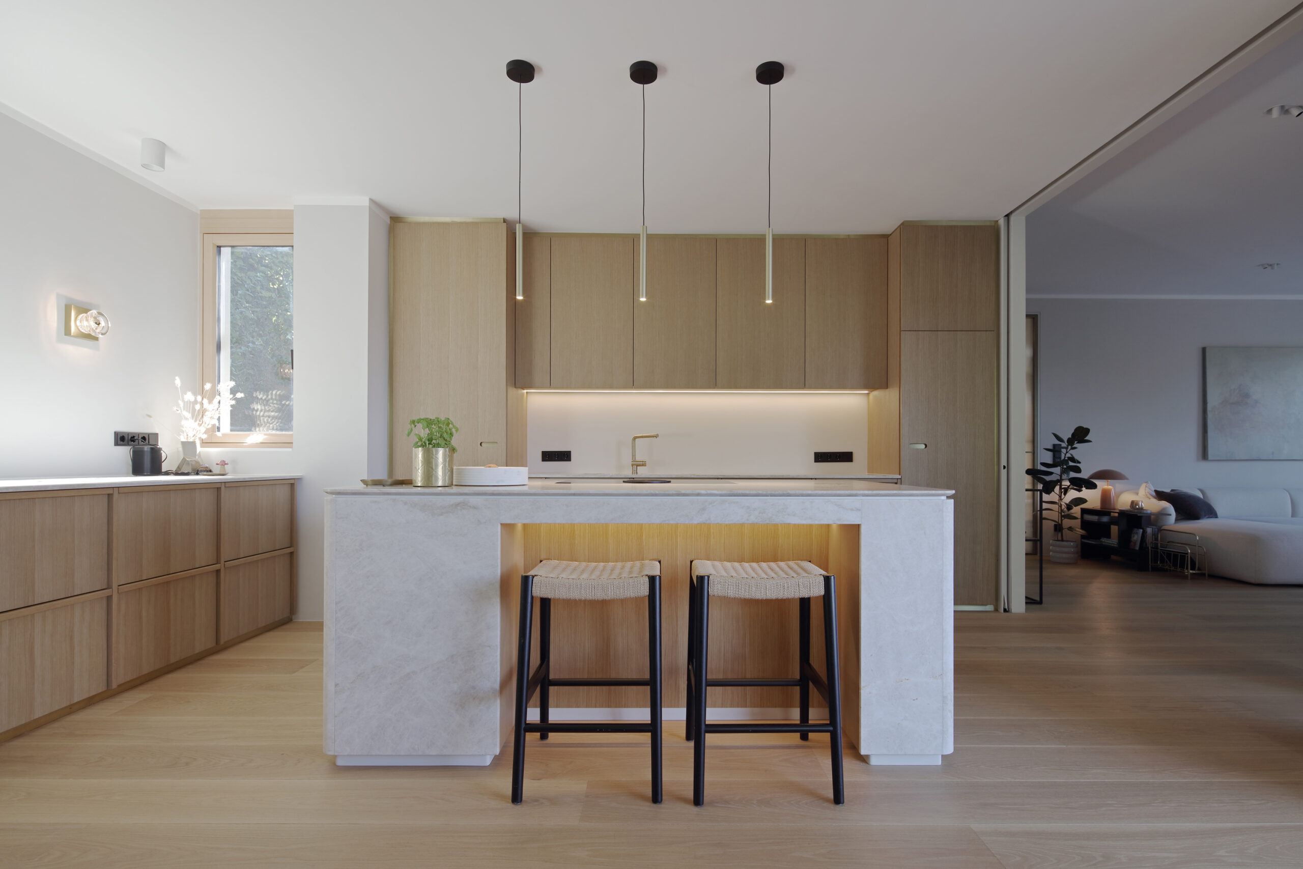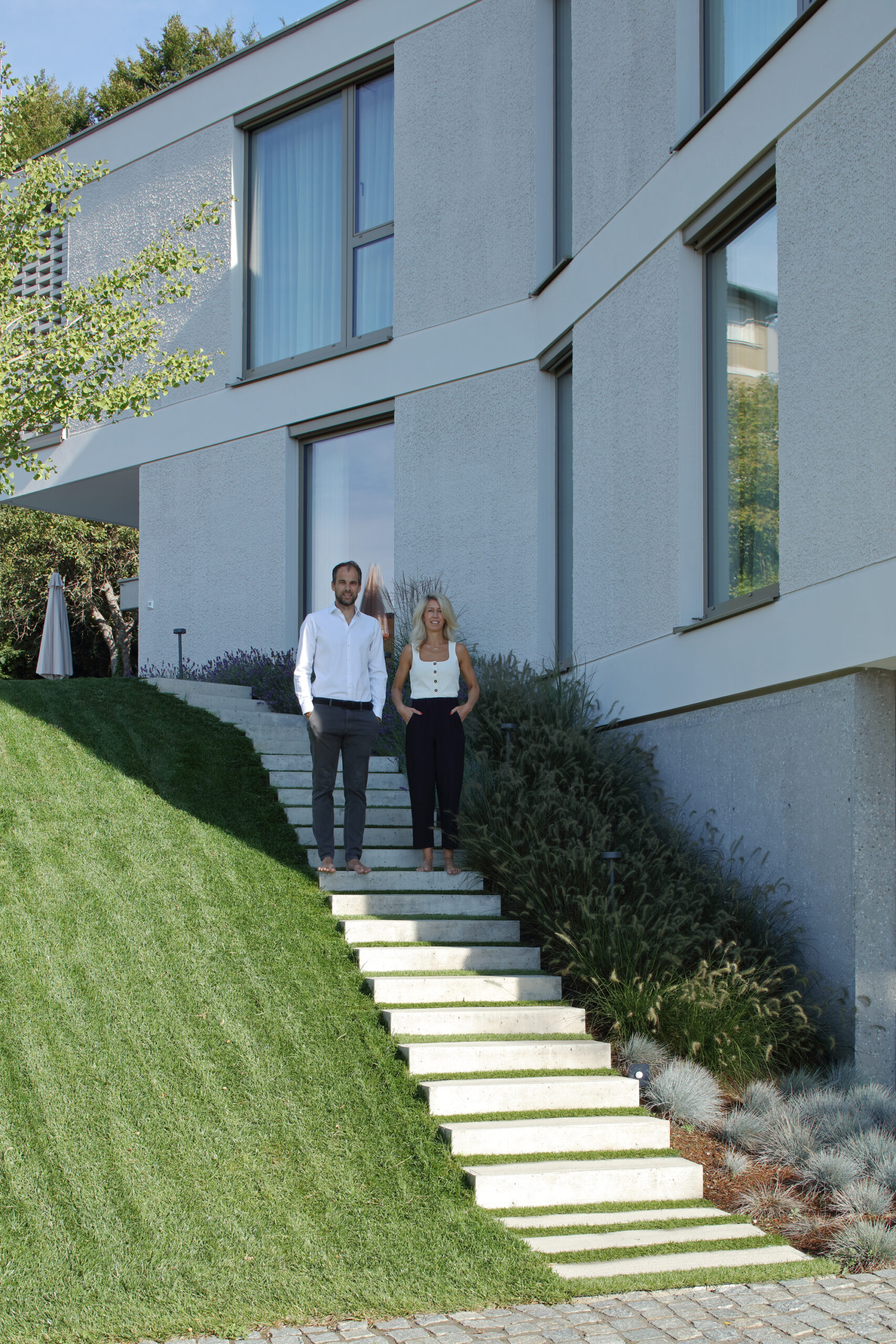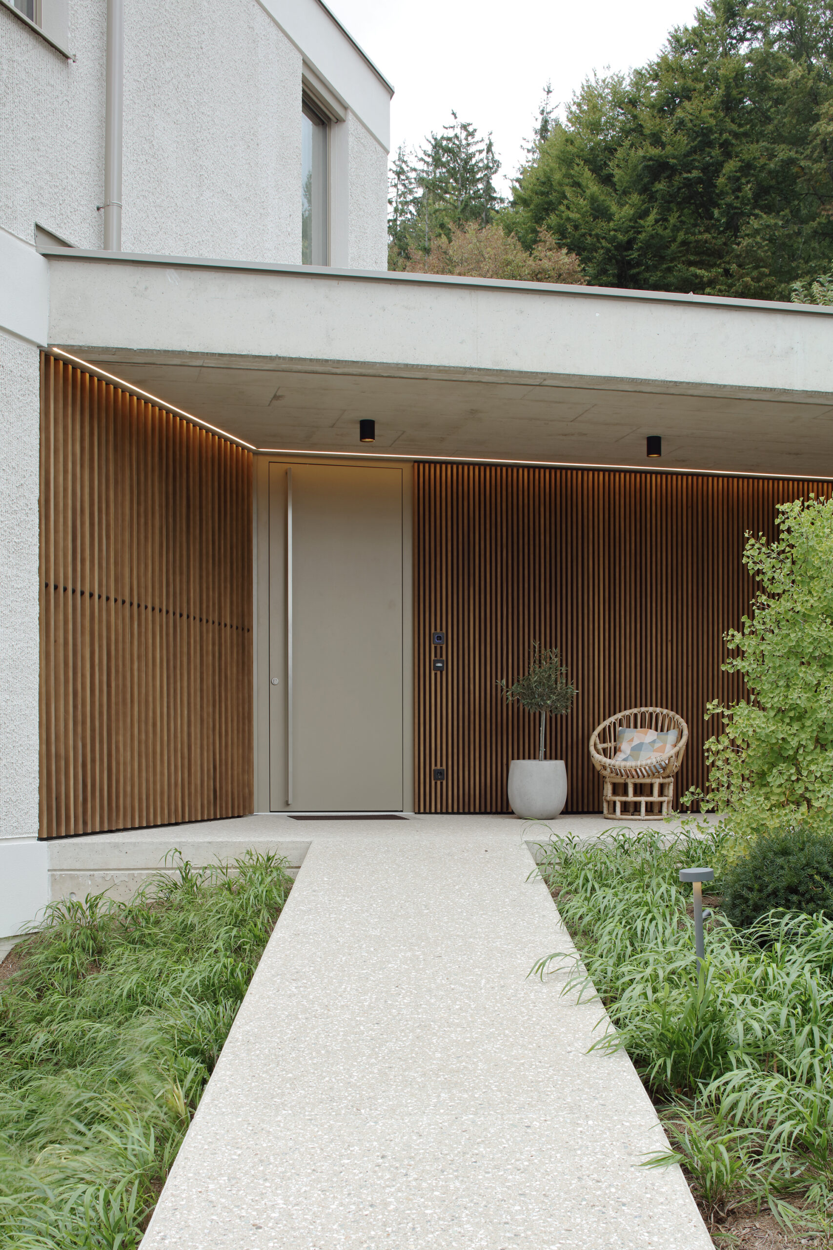 Präzise Materialwahl und hohe Anforderungen an Details waren der Bauherrschaft ebenso wichtig wie der Erhalt der Außenanlagen. Somit konnte der Neubau in eine gewachsene Umgebung gesetzt und die wohnliche Atmosphäre unmittelbar geschaffen werden.